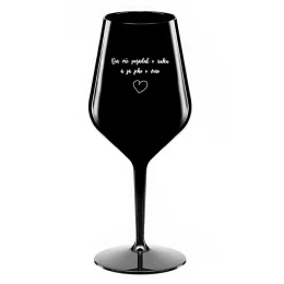 ON MĚ POŽÁDAL O RUKU A JÁ JEHO O VÍNO - černá nerozbitná sklenice na víno 470 ml