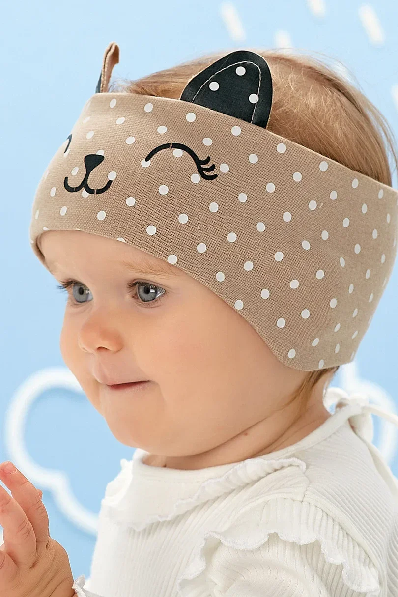 Dívčí čelenka z dvojité vrstvy jemné bavlny s veselou aplikací. Profilovaný model, který dobře kryje uši.