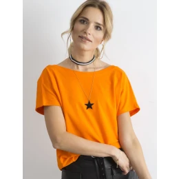 Pomarańczowy t-shirt Fire. Słynne na cały świat t-shirty to ubranie, którego nie może zabraknąć w Twojej kolekcji. Szczególnie w wersji basic, czyli gładkie jednokolorowe koszulki zrobione z bawełny. Ten model ma klasycznie krótki rękaw, nieco luźniejszy fason i podwójny dekolt. Z przodu zdobi go kobieca łódka, natomiast z tyłu głębsze wcięcie w kształcie trójkąta. Całość jest niezwykle wygodna w noszeniu, miękka w dotyku i świetnie prezentuje się na ciele. Taki t-shirt damski basic jest idealny do noszenia na co dzień, zarówno w cieplejsze, jak i chłodne dni. Doskonale pasuje do letnich stylizacji z szortami i mini spódniczkami w roli głównej, ale wspaniale sprawdzi się także w chłodne miesiące jako dodatek do spodni jeansowych oraz swetrów. Wybierz już teraz swój ulubiony kolor i ulepsz swoją garderobę!
