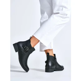 Originální černé dámské kotníčkové boty na plochém podpatku