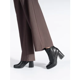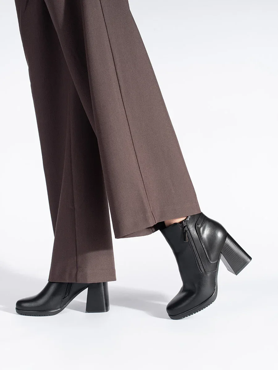 Originální černé kotníčkové boty dámské na širokém podpatku