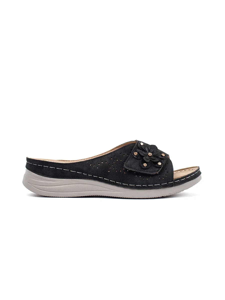 Originální černé nazouváky dámské na plochém podpatku