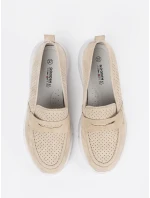 Mokasíny vyrobené z ekologického semiše. Umístěné na platformě a jemném podpatku poskytují pohodlí a lehkost siluetě. Kulaté špičky dělají obuv velmi pohodlnou a měkká vložka pečuje o pohodlí po celý den. Celkový vzhled doplňují ozdobné řasy, které dodávají originální charakter a styl. Ideální pro každodenní outfity!
