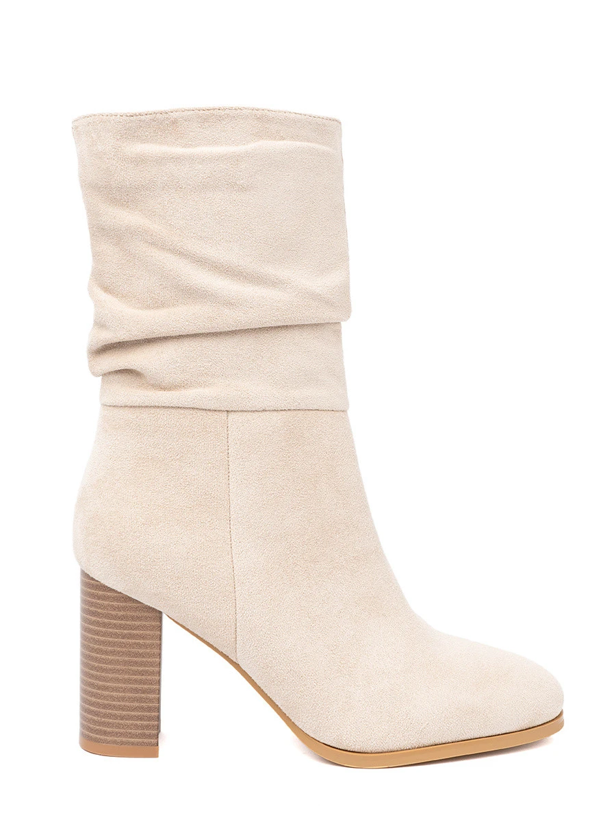 Originální Jasnobeżowy kotníčkové boty dámské na širokém podpatku