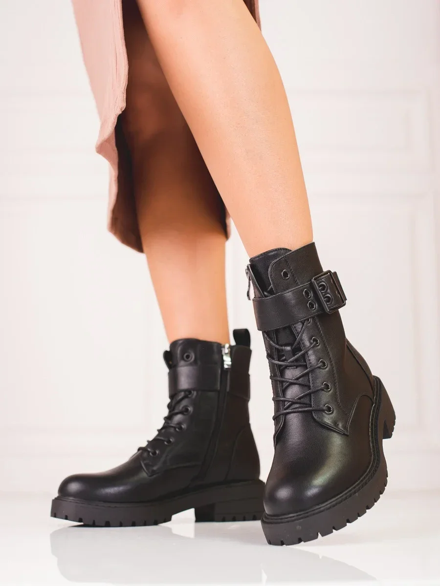 Originální kotníčkové boty černé dámské na plochém podpatku