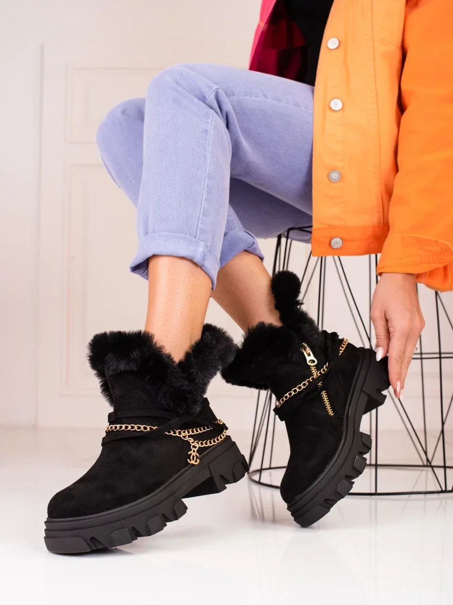 Originální kotníčkové boty černé dámské na plochém podpatku