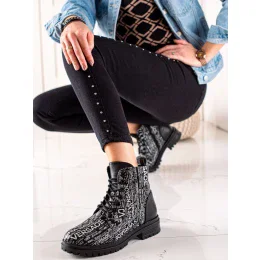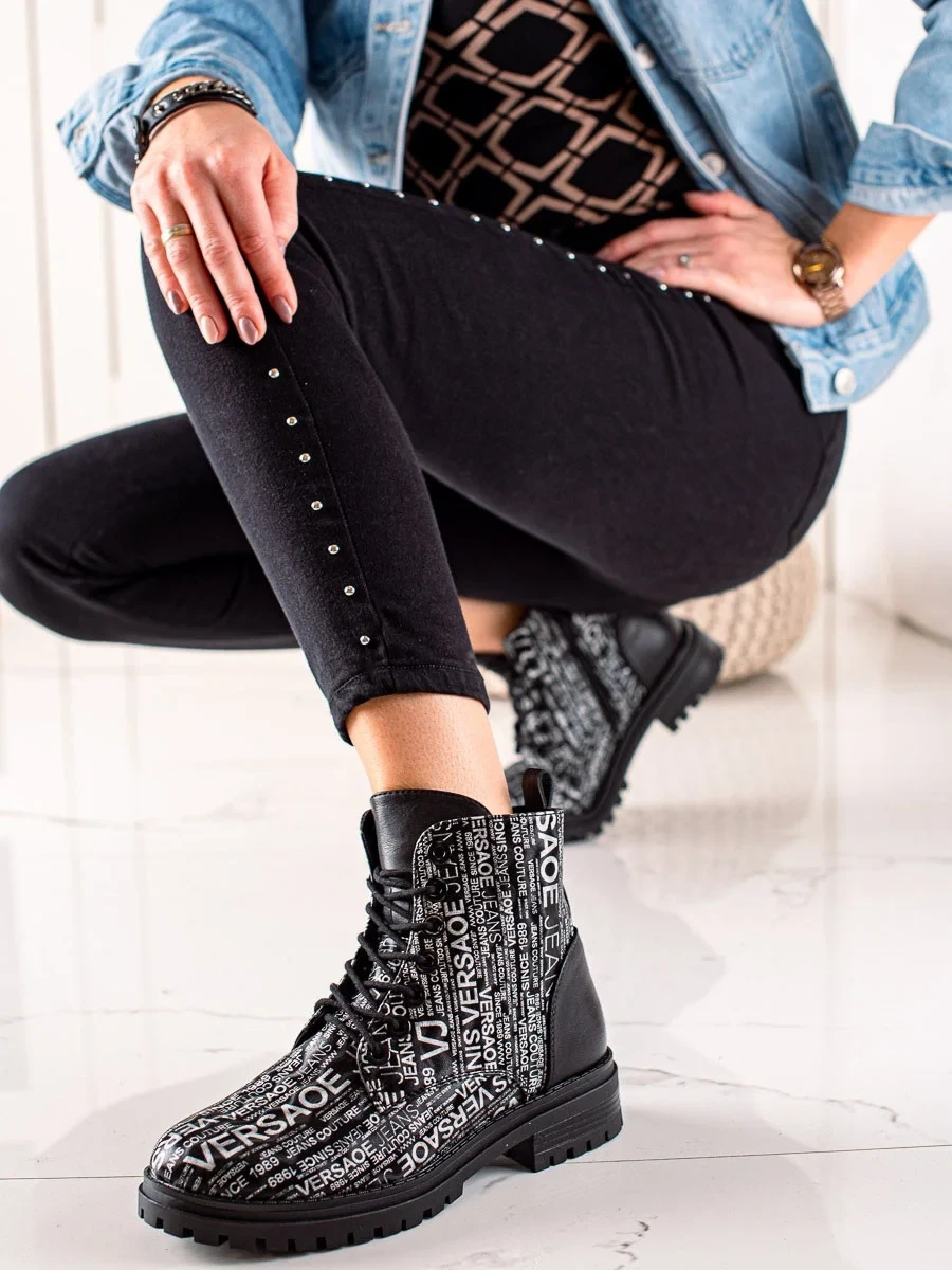 Originální kotníčkové boty dámské černé na plochém podpatku