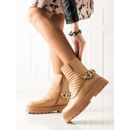 Originální kotníčkové boty dámské hnědé na plochém podpatku