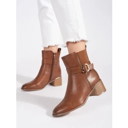 Originální kotníčkové boty hnědé dámské na širokém podpatku