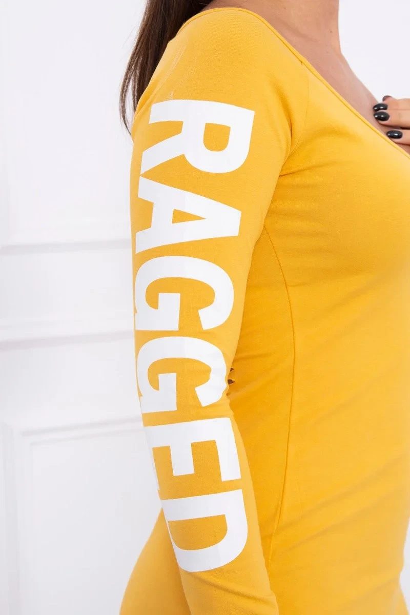 Prezentujemy Państwu wygodną sukienkę z napisem Ragged. Sukienka wykonana jest z wysokiej jakości materiału. Rozmiar jest uniwersalny i będzie odpowiedni dla Pań noszących rozmiar XS, S lub M.
