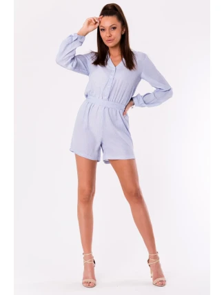 Kombinéza s dlouhými rukávy. Oblek má zapínání na knoflíky, pásek a 3/4 rukávy.