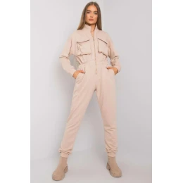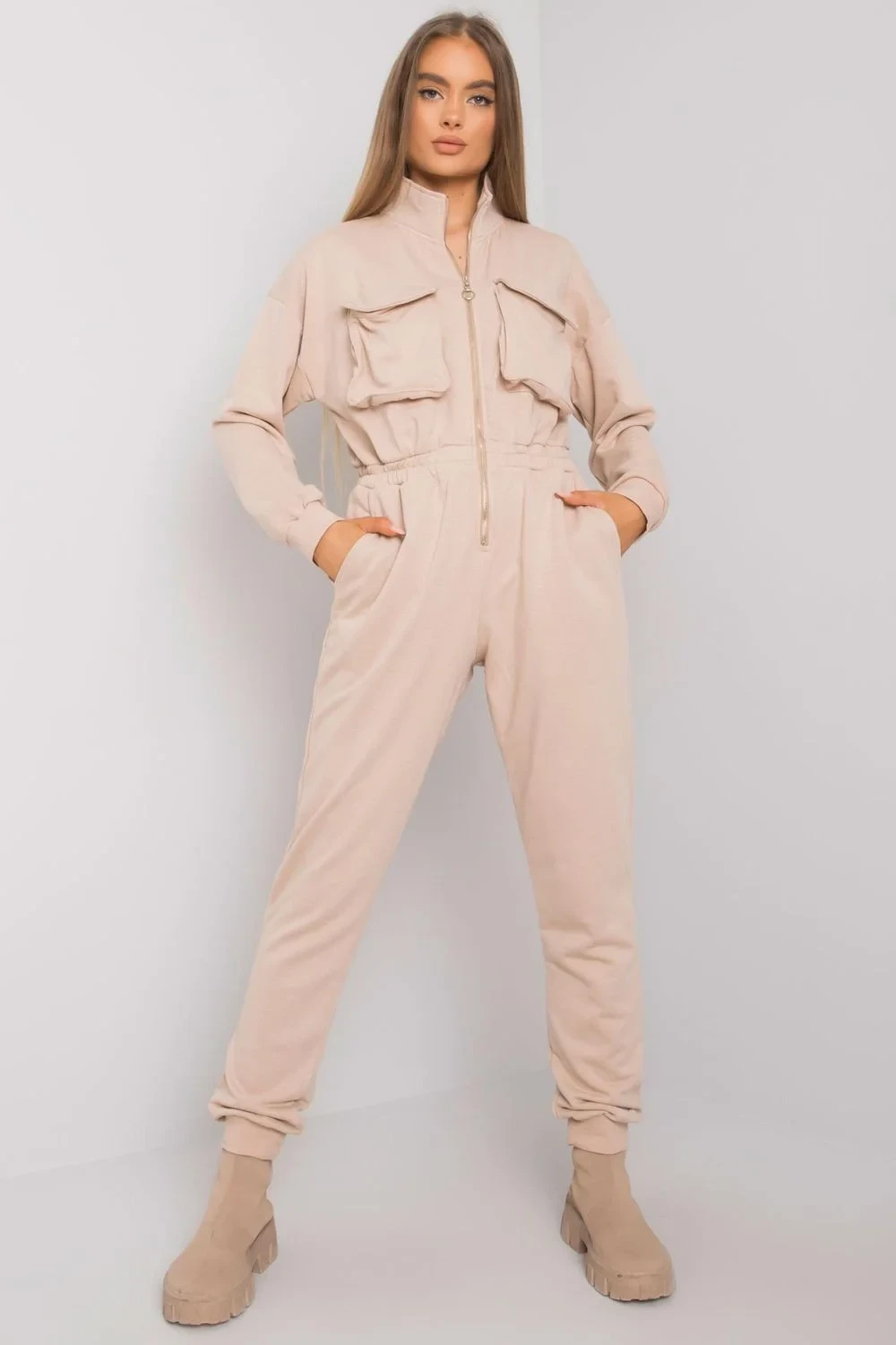 Béžový bavlněný overal na zip. Ideální pro každodenní nošení.