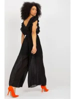 Plisovaný overal s širokými nohavicemi, výstřihem do V a zavazováním v pase. Oblek má podšívku.