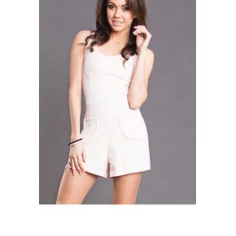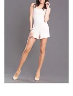 Dámský overal bez rukávů v růžové barvě. Vpředu našité kapsy, vzadu výřez ve tvaru srdce.