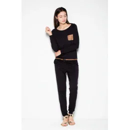 Elegantní kombinéza s dlouhými rukávy a dlouhými nohavicemi. Má kapsu a pásek v kontrastní barvě. Velmi pohodlné a zároveň velmi elegantní.