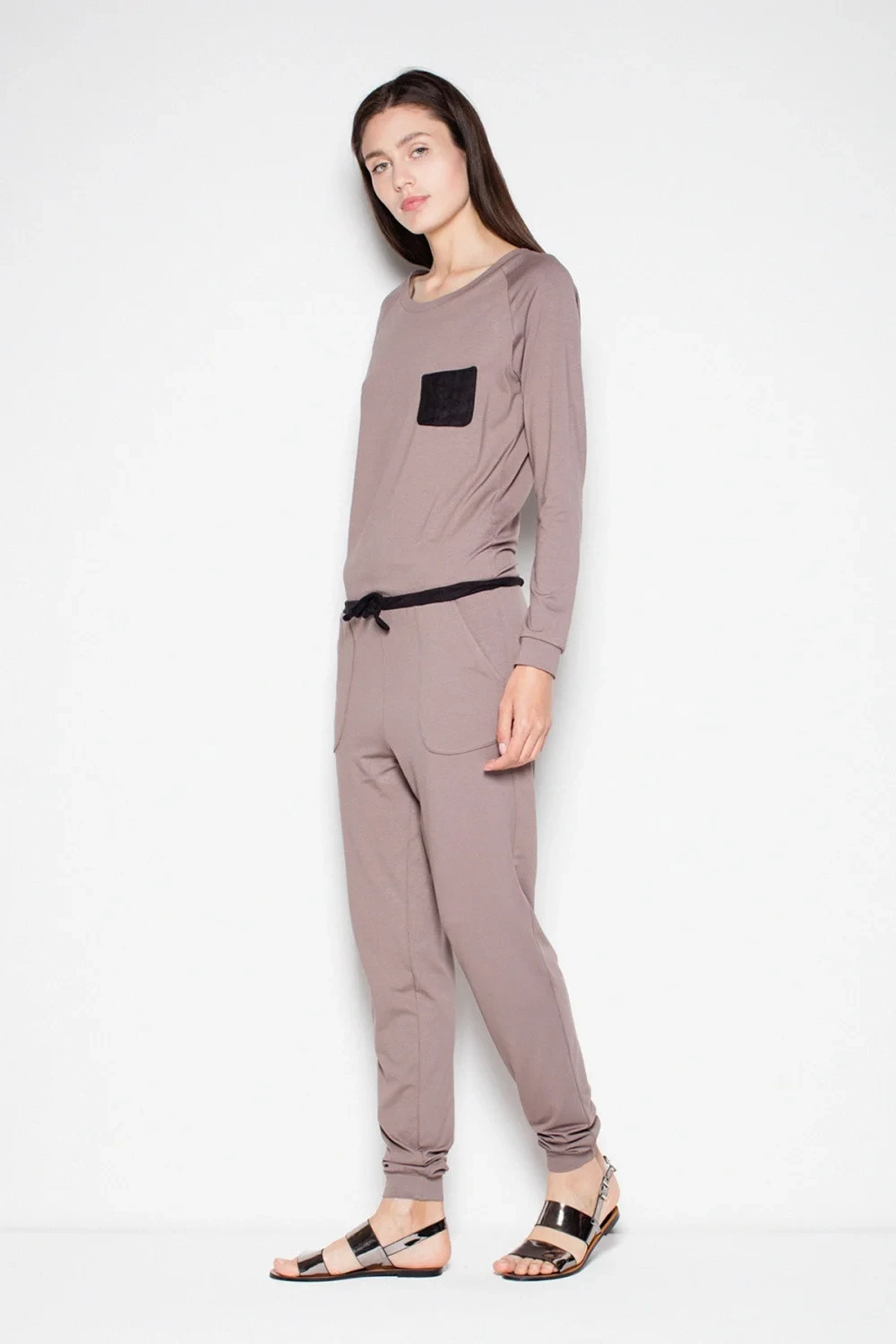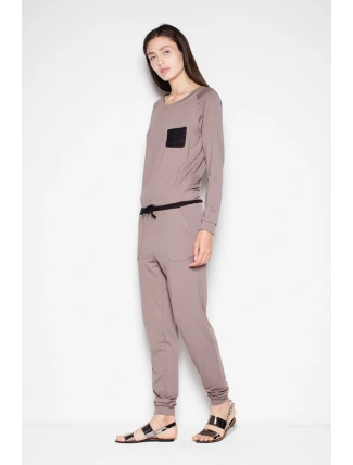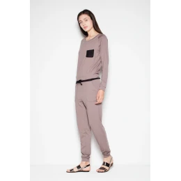 Elegantní kombinéza s dlouhými rukávy a dlouhými nohavicemi. Má kapsu a pásek v kontrastní barvě. Velmi pohodlné a zároveň velmi elegantní.