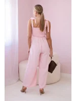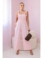 Overal na ramínka s volánkovým topem pudrově růžová
