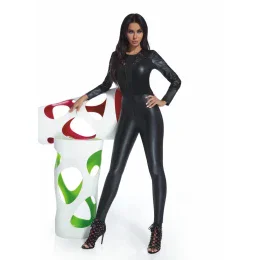 Sexy kombinéza, která je vyrobená z eko kůže a svůdné krajky. Kombinéza má kulatý výstřih, dlouhé rukávy a vzadu se zapíná na zip. V zadní části jsou umístěné patky imitující kapsičky. Jemnost: 200 DEN.Materiál ECO-LEATHER imituje kůži, je plně kryjící, elastický a modeluje postavu. Tento materiál je vyrobený z přízí renomovaných producentů s mezinárodním certifikátem Oeko-Tex.