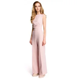 Společenské šaty značkové moderní střih s ozdobnými zipy na ramenou růžové - Růžová / XL - J&J