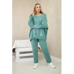 Oversize bavlněný komplet teplákové + kalhoty tmavá máta