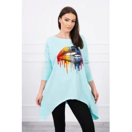 Oversize halenka s duhovým potiskem rtů v barvě mint