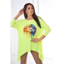 Oversize halenka s duhovým potiskem rtů žlutá neonová