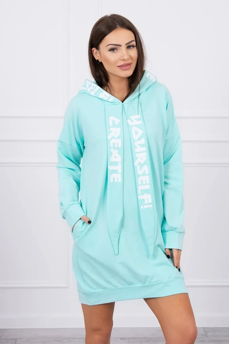 Představujeme vám módní šaty. Šaty mají kapuci. Šaty mají potisk na kapuci a na šerpě vpředu. Ideální každodenní poloha. Šaty jsou vyrobeny z vysoce kvalitního materiálu. Velikost je univerzální a vyhovuje dámám, které nosí velikost M, L nebo XL