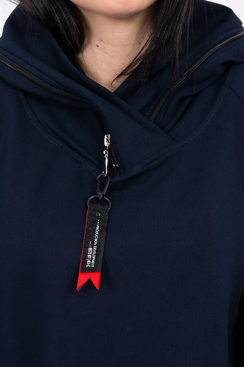 Oversize tmavě modrá tunika na zip s kapucí