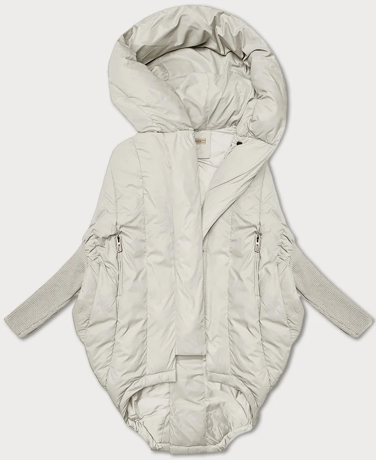 Dámská oversize bunda v barvě ecru s úpletovými rukávy Way Mode (MY0580)