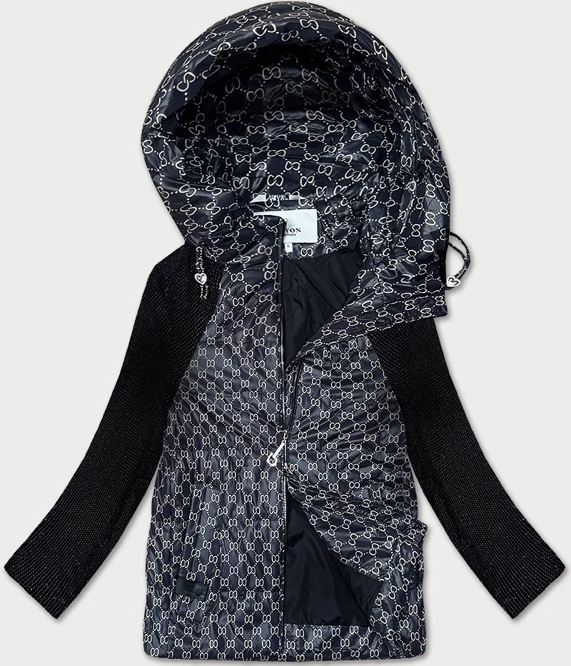 Černá oversize bunda pro přechodné období z různých spojených materiálů Vaston (F-23729-2#)
