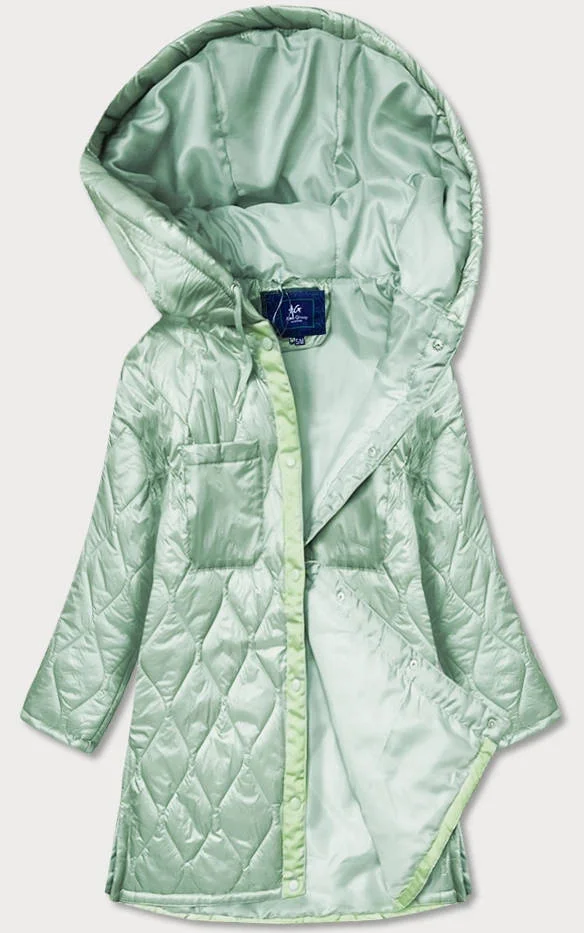 Dámská prošívaná oversize bunda v mátové barvě s kapucí (ag5-010)
