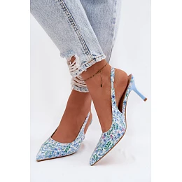 Ozdobené dámské sandály na jehlovém podpatku s květinovým vzorem modré Olivelle