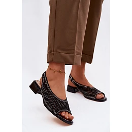 Ozdobené otevřené dámské sandály na podpatku semiš D&A CR61-3131 Černé