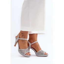 Ozdobené sandály na podpatku D&A MR1038-44 stříbrné