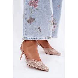 Ozdobené sandály s síťkou na jehle Béžové Bedira