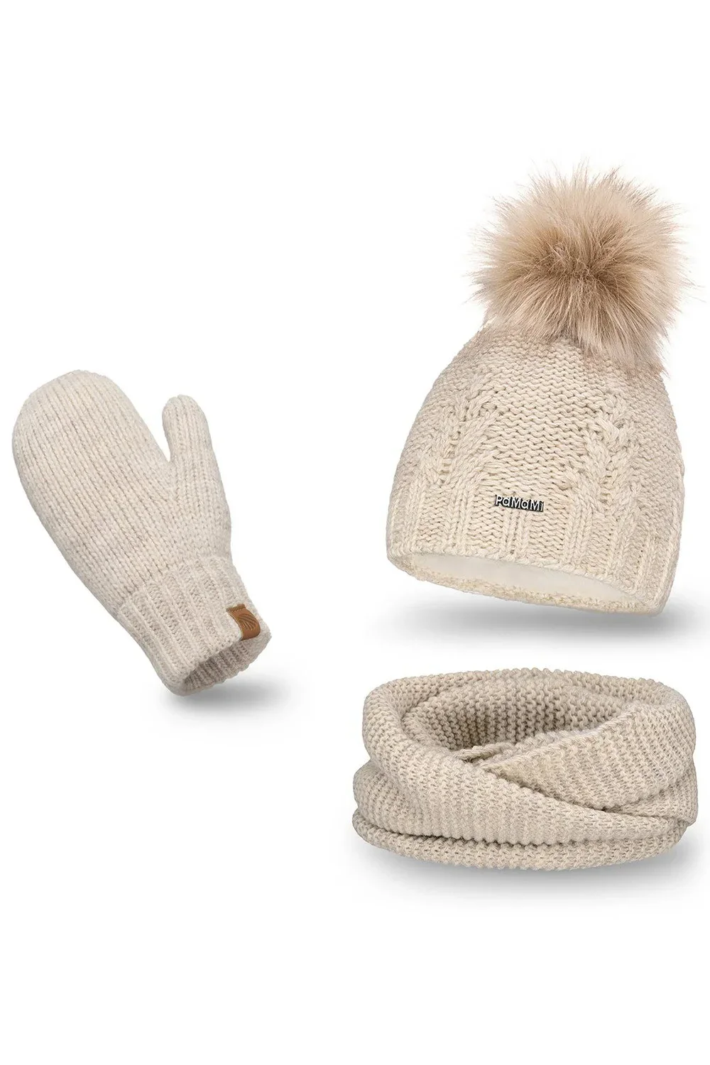 Souprava značky Pamami, model 17549+14603+20680. Výrobek je vyroben z 85 % akrylu, 15 % polyamidu. Dámský výrobek.