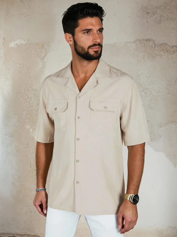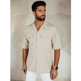 Pánská béžová košile s krátkým rukávem FashionStreet KX1087
