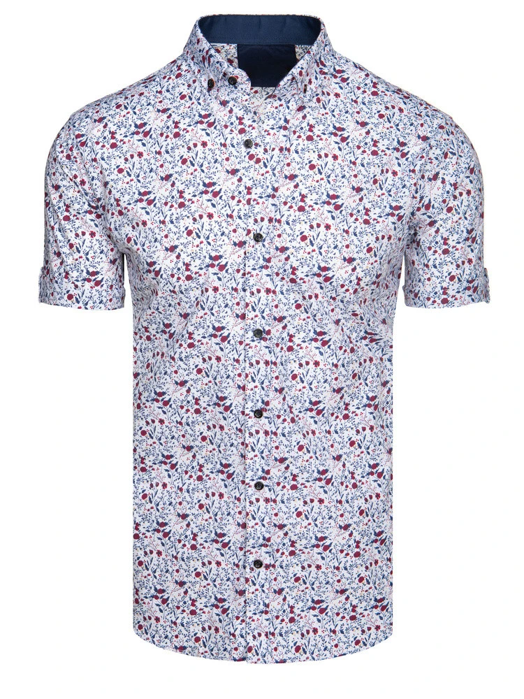 Pánská ležérní košile navržená pro ty, kteří ocení osobitý styl a pohodlí při nošení. Ozdobný potisk s drobnými květy ozvláštní každý styling. Model má krátké rukávy, zapíná se na kontrastní knoflíky a klasický límec s knoflíky dotváří celek elegantním akcentem. Košile je ideální jako jarní základ pro každodenní styling i pro zvláštní příležitosti.