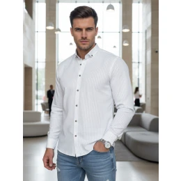 Pánská bílá vzorovaná košile slim fit FashionStreet DX2693