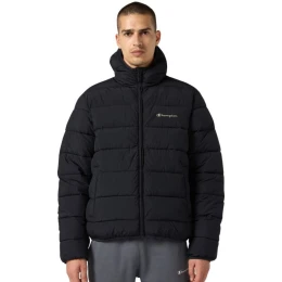 Pánská bunda Champion s kapucí černá 221548 KK001 Tato pánská bunda Champion je zimní bunda se syntetickou péřovou výplní. Izolace Repreve™ je šetrná k životnímu prostředí. Jednosměrný hlavní zip. Hydrofobní úprava tkaniny zpomaluje absorpci vnější vlhkosti. Horizontální prošívání. Vysoký stojatý límec. Neodnímatelná, nenastavitelná kapuce. Boční kapsy. Volný střih dresu se sníženou ramenní linií. Všitá guma na spodním lemu, manžetách a kapuci. Technické údaje: - Hlavní tkanina: 100% polyamid - Výplň: 100% polyester (syntetické prachové peří, Repreve™).