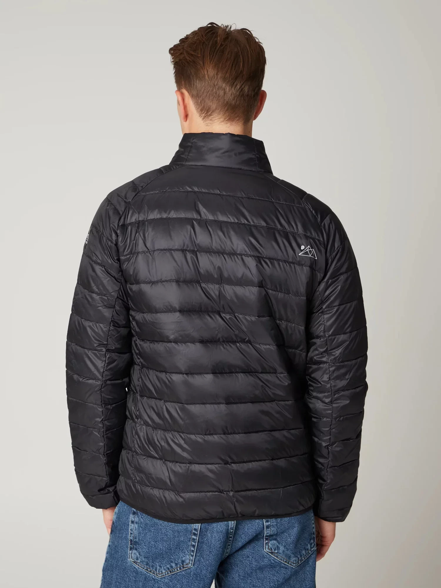 Tato prošívaná bunda má vysoký límec a kapsy na zip.