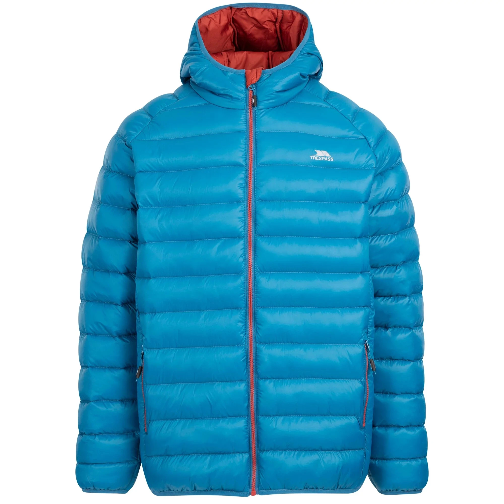 Pánská prošívaná bunda Trespass Bosten na zip s kapucí se syntetickou výplní pro maximální zahřátí bez zbytečné zátěže.