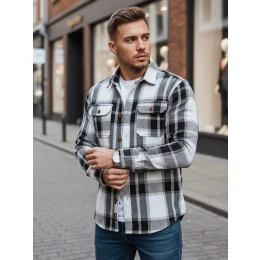 Pánská černobílá kostkovaná flanelová košile FashionStreet DX2673