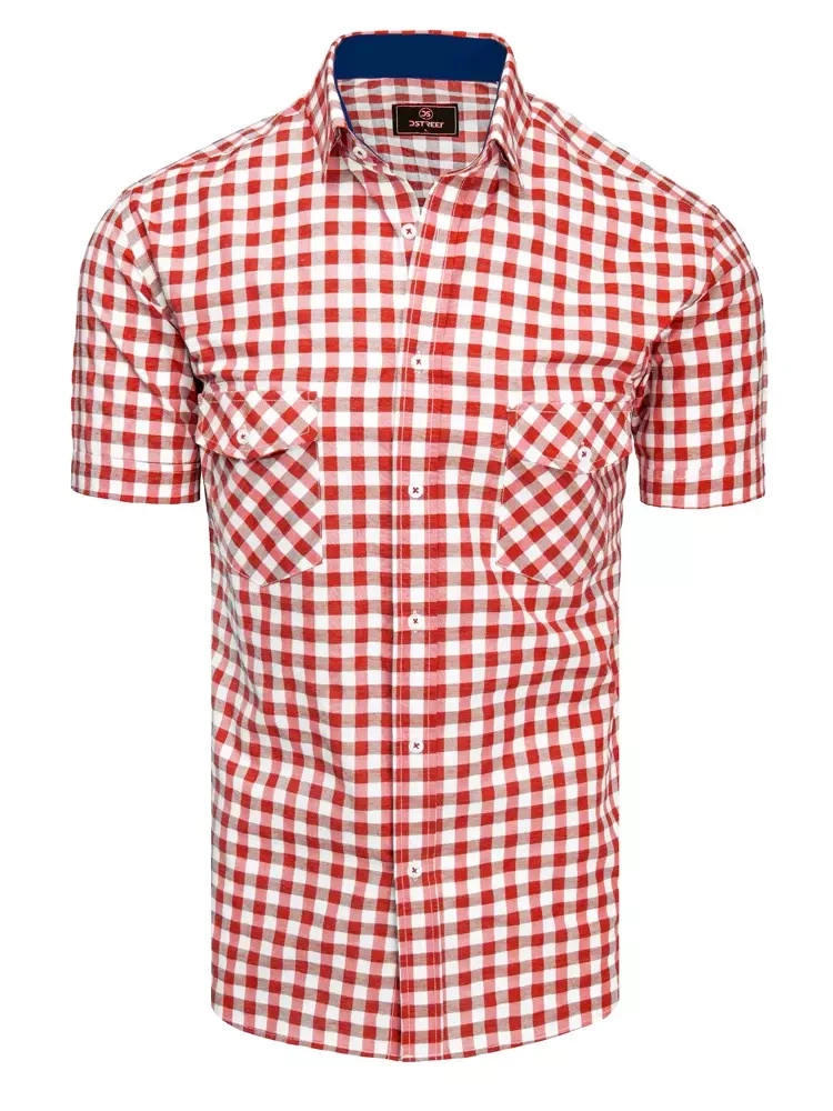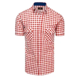 Pánská červenobílá kostkovaná košile s krátkým rukávem FashionStreet KX0954