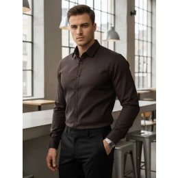 Pánská elegantní hladká tmavě hnědá košile SLIM FIT FashionStreet DX2682