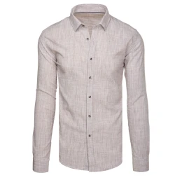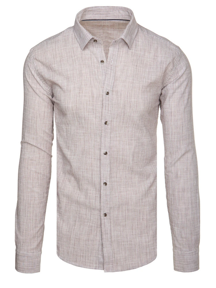 Pánská košile s dlouhým rukávem a jemným proužkem béžová FashionStreet DX2657
