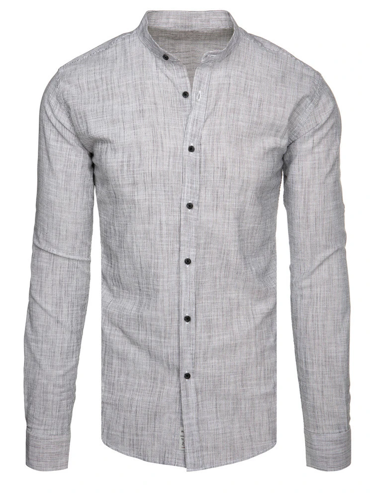 Pánská košile s dlouhým rukávem a stojáčkem šedá FashionStreet DX2659