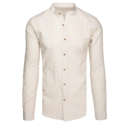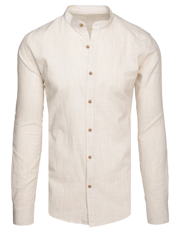 Pánská košile s dlouhým rukávem a stojáčkem ve světle béžové barvě FashionStreet DX2658