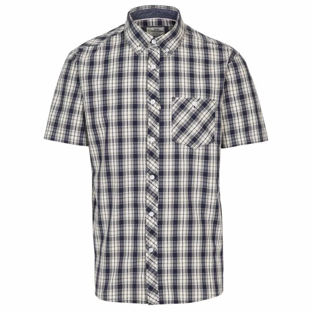 Pánská kostkovaná košile s límečkem a zapínáním na knoflíčky.