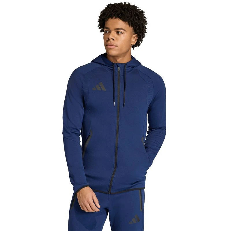 Mikina adidas Tiro 26 Travel Sweat Hoodie v tmavě modré barvě KF6078 Tato pánská mikina od značky adidas vám zajistí pohodlí i mimo hřiště. Mikina je z fotbalové řady Tiro. Tkanina kombinuje bavlnu a polyesterová vlákna. Dlouhý jednosměrný zip s ochrannou légou. Přizpůsobený střih s pružným lemem. Prostorná kapuce s nastavitelnou délkou. Přední kapsy na zip. Materiál: 75 % bavlna, 25 % recyklovaný polyester.